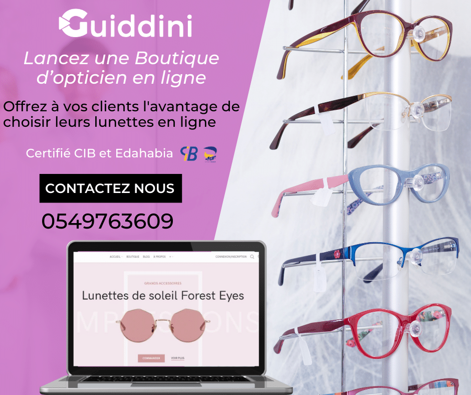 Lancer votre boutique en ligne de vente de lunette avec Guiddini, et bénéficier d’un accompagnement professionnel dans la vente en ligne.
