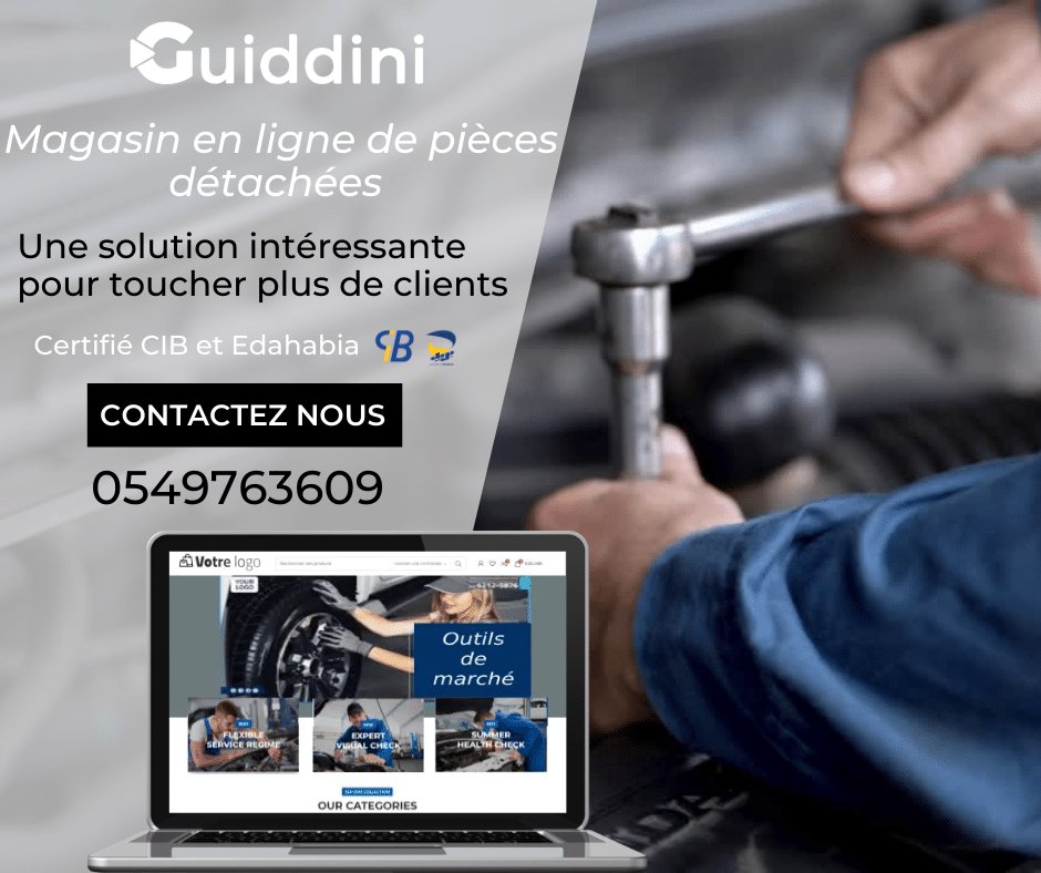 Lancer votre boutique pour votre commerce de pièces détachés avec Guiddini, et bénéficier d’un accompagnement professionnel dans la vente en ligne.