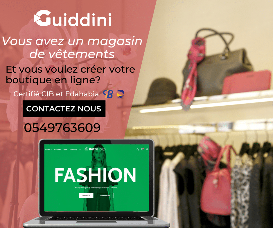 Lancer votre boutique de vêtement avec Guiddini, et bénéficier d’un accompagnement professionnel dans la vente en ligne.